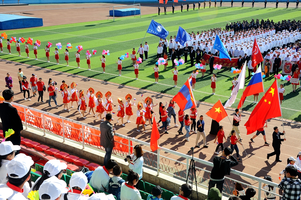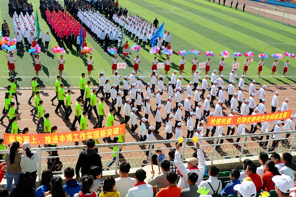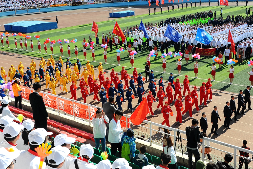 来自各单位、各学院师生代表队迈着整齐的步伐,精神饱满地依次在主席台前接受大会检阅。其中,国际教育学院的来自俄罗斯、美国、韩国等国留学生参加了检阅,集中展示了我校留学生的新面貌。研究生部师生意气风发地接受了大会的检阅,充分展示了我校研究生教育蓬勃发展的新风貌。