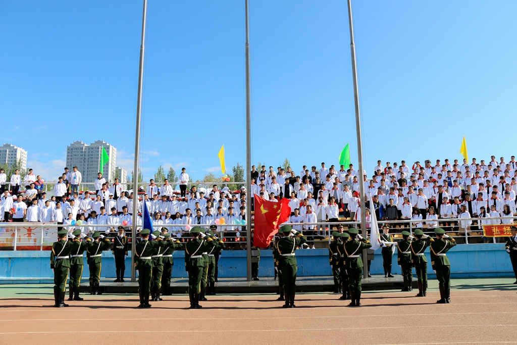 开幕式上,我校举行了隆重的升国旗、奏国歌,升校旗、会旗,奏校歌仪式。全体师生面向国旗、校旗庄严行礼。