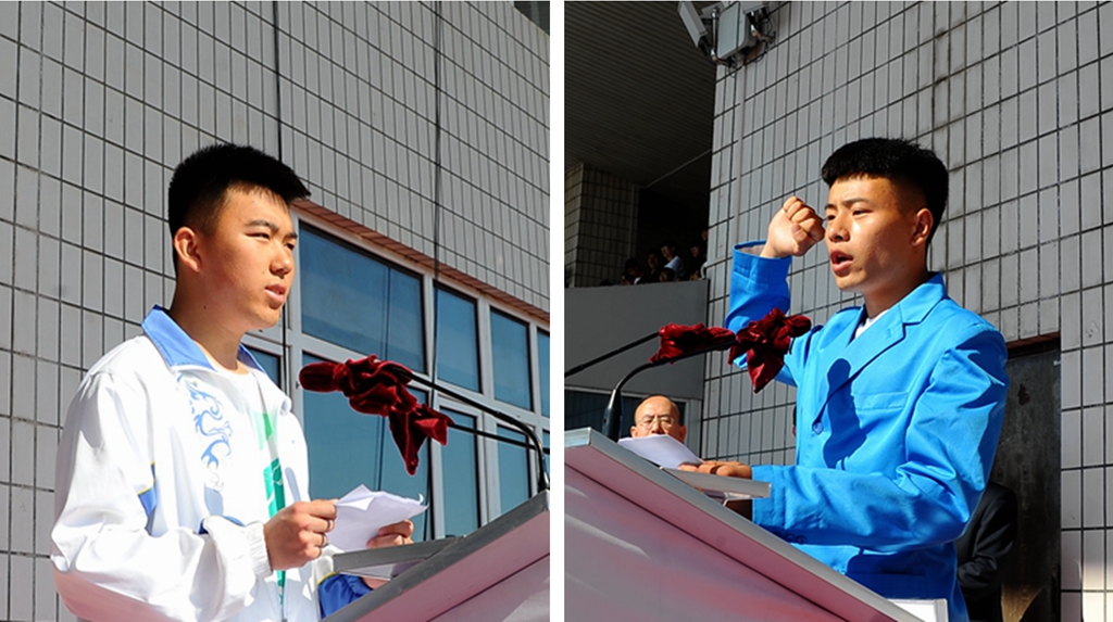 运动员代表计算机与控制工程学院计算机科学与技术专业177班王宇航同学代表全体运动员宣誓,裁判员代表体育学院体育教育专业162班程莫宇同学代表全体裁判员宣誓。