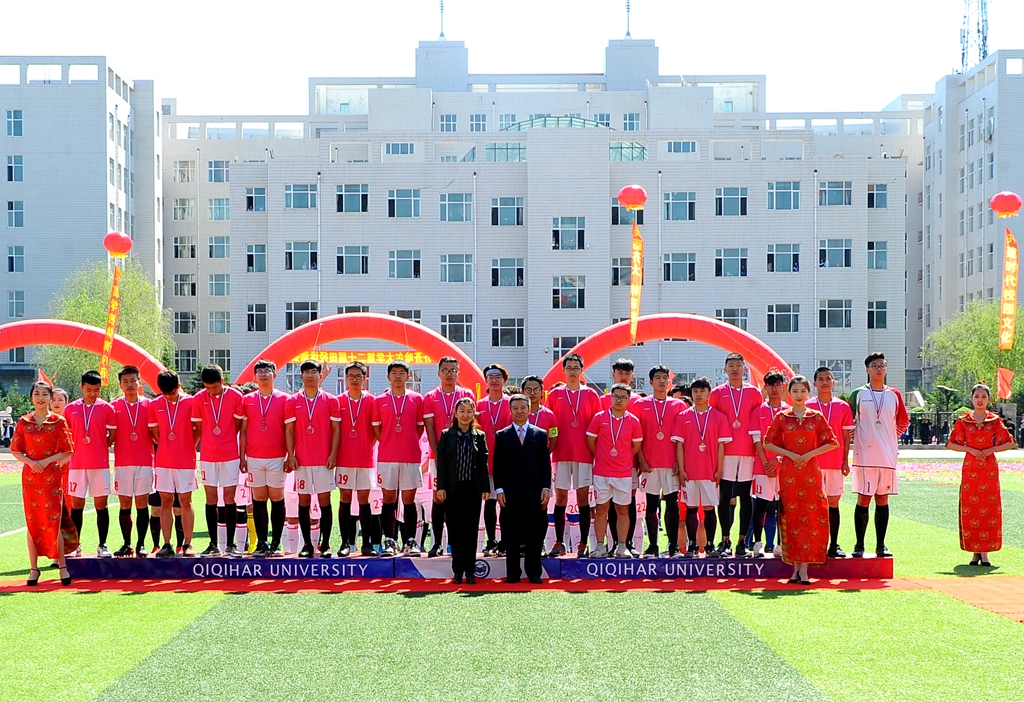 比赛正式开始前,与会校领导作为颁奖嘉宾,分别为此前举行的男子一万米、女子五千米等项目获得者以及校园足球联赛前三名学院颁奖。