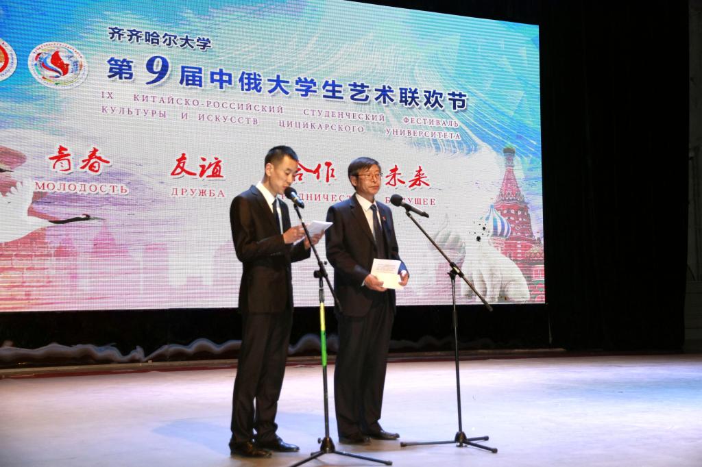 致青春歌飞舞暖友谊花开欧亚,创未来龙腾熊纵合作馥满中俄。为进一步加强中俄两国大学生文化艺术交流,充分发挥齐齐哈尔大学中俄大学生艺术交流基地的作用,5月21日晚19:00,第九届中俄大学生艺术联欢节在我校文化宫隆重举行。