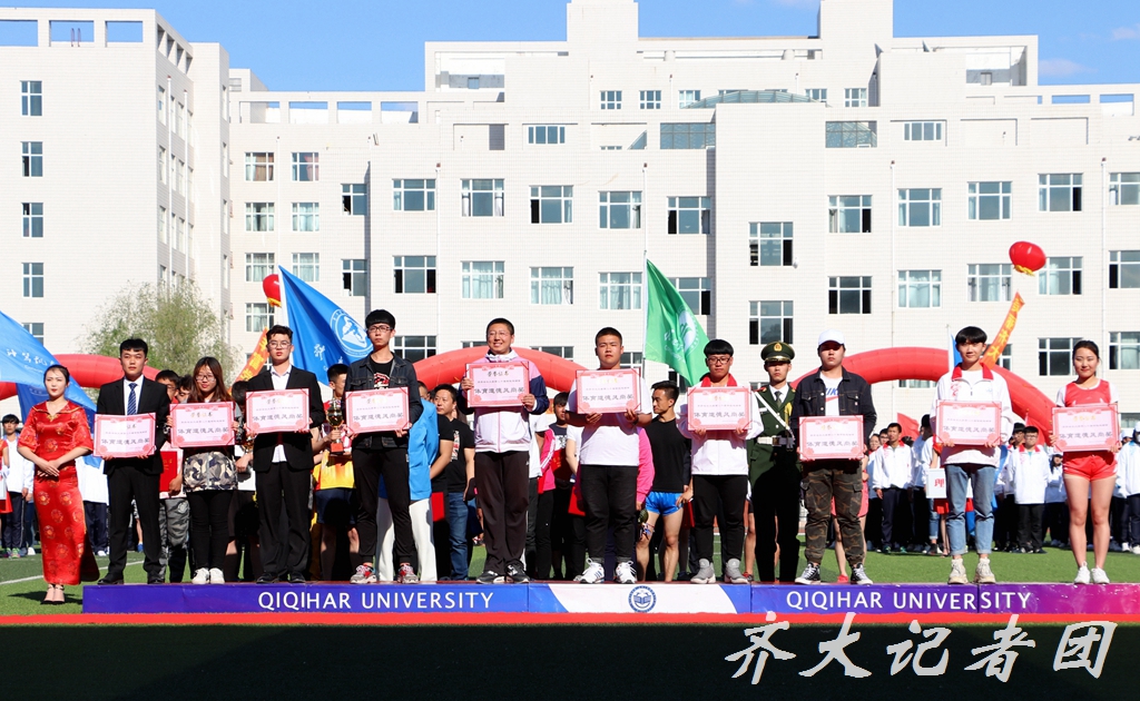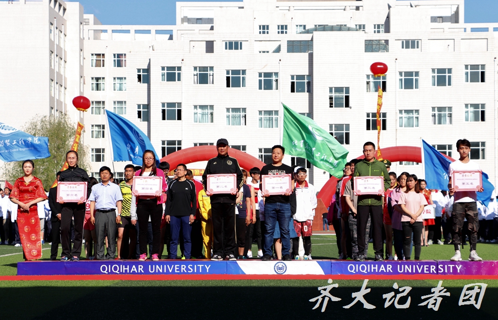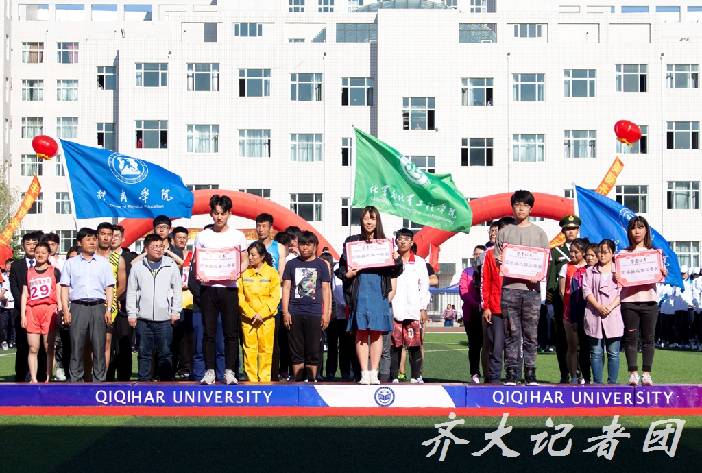 在本届运动会上,经济与管理学院、教育与传媒学院、化学与化学工程学院、计算机与控制工程学院、材料科学与工程学院、食品与生物工程学院等单位荣获学生组团体总分前六名;机关、后勤管理处、公共外语教研部、化学与化学工程学院、食品与生物工程学院、生命科学与农林学院获教工组团体总分前六名;食品与生物工程学院、经济与管理学院、计算机与控制工程学院、研究生部分别获得学生团体操比赛一、二、三等奖;机关等8个基层工会荣获“2017-2018年度教职工系列单项体育赛事优秀基层工会”;经济与管理学院陈梅等10名同学荣获“十佳运动员”称号;经济与管理学院、教育与传媒学院、生命科学与农林学院、材料科学与工程学院、研究生部、计算机与控制工程学院、建筑与土木工程学院、美术与艺术设计学院、音乐与舞蹈学院、通信与电子工程学院等10个单位荣获“体育道德风尚奖”;理学院、齐齐哈尔大学国旗护卫队、体育学院荣获“特别贡献奖”。