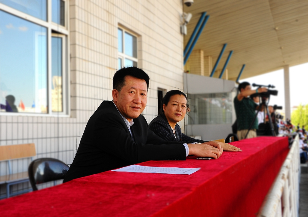 校党委书记兰景力和校长陈桂芝在主席台就坐