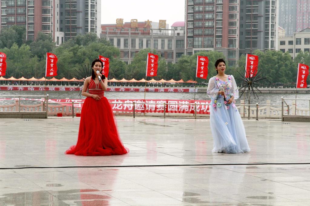 龙腾奋进新时代,劈波斩浪向未来!龙舟赛正式开始前,精彩的预热表演引来掌声阵阵。由音乐与舞蹈学院潘一霏、程琳琳两位同学带来的歌曲二重唱《春天的芭蕾》,用美妙的歌声将现场观众带入了草长莺飞、鸟语花香、充满希望的季节;古典舞《雨中花》的表演者用灵动曼妙的舞姿展现了雨中花朵的风姿;由教育与传媒学院杨泽和林佳慧两位同学带来的诗朗诵《离骚》,语调铿锵、气势高昂,细腻地表现了诗人的爱国主义情怀,将比赛的历史氛围推向高潮;在傣族舞蹈《水之灵》的表演中,一群婀娜多姿的少女用曼妙的舞姿为观众呈现了雀屏盛开的美丽圣景;来自我校国际教育学院的俄罗斯留学生萨尔丹娜等也为龙舟赛献上了歌舞表演《谁不说俺家乡好》,博得观众们的阵阵掌声;男生独唱《欢聚一堂》则使现场观众久久沉浸在龙腾盛世的热闹场景中。