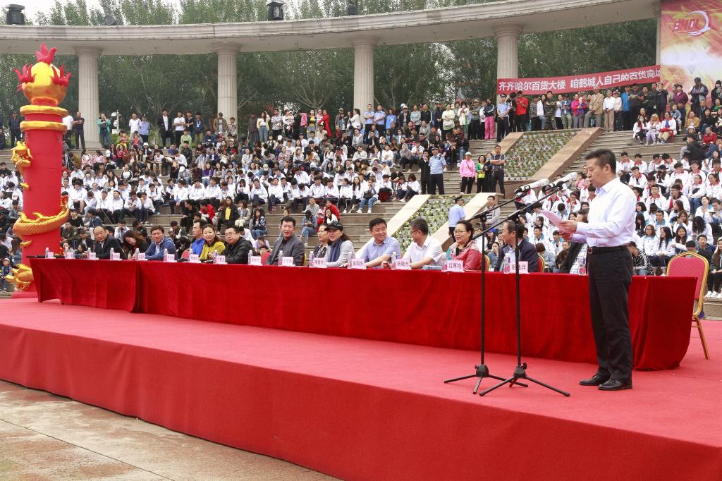 陈桂芝在开幕式上致辞,她首先代表齐齐哈尔大学3万余名师生,向莅临赛场的各位领导、来宾、市民和广大师生致以节日的祝福,并祝参赛的选手们取得好成绩!