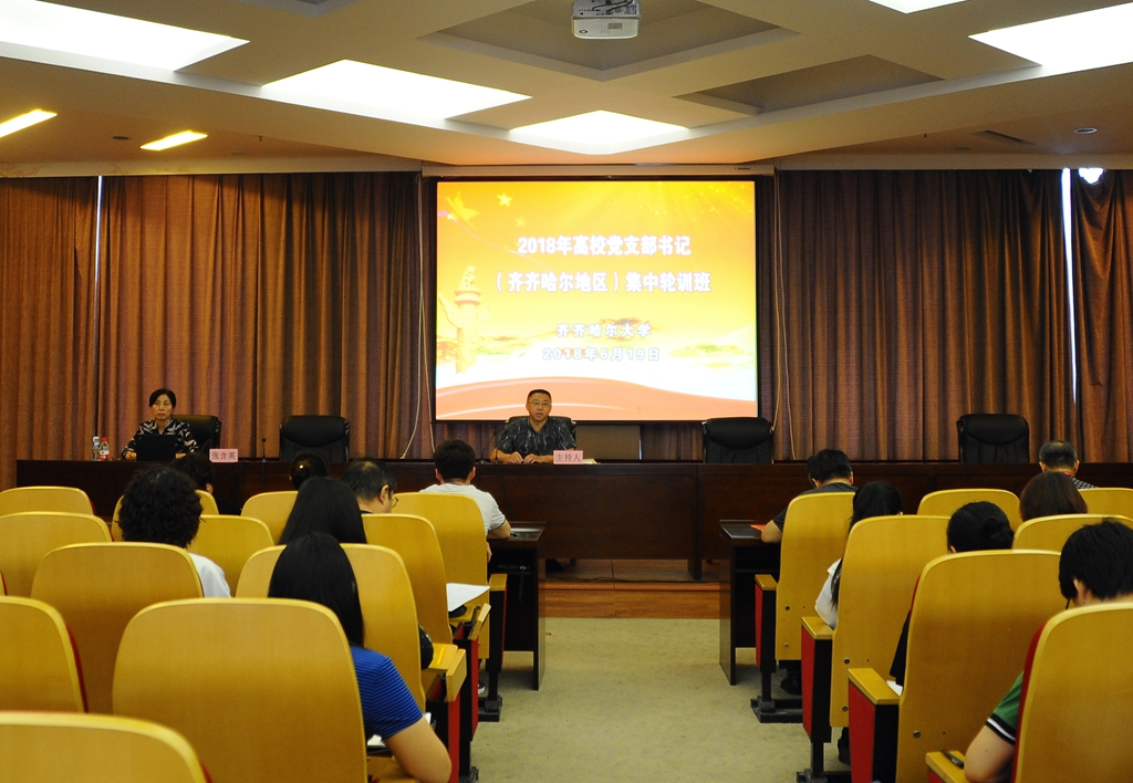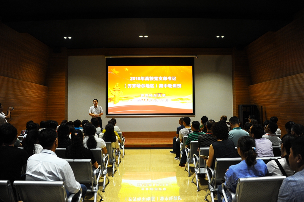 为深入学习宣传贯彻习近平新时代中国特色社会主义思想和党的十九大精神,深入推进高校党支部书记“三推两强”工程,根据中央和省委关于基层党组织书记培训工作有关要求,6月19日上午,黑龙江省2018年高校党支部书记集中轮训班(齐齐哈尔地区)开班仪式在我校德润大厦四楼会议室举行,来自齐齐哈尔大学、齐齐哈尔医学院、齐齐哈尔工程学院、齐齐哈尔高等师范专科学校、黑龙江交通职业技术学院、齐齐哈尔理工职业学院等在齐齐哈尔市办学的6所高校教工党支部书记参加了开班仪式。开班仪式由校党委组织部副处级组织员徐海祥主持。