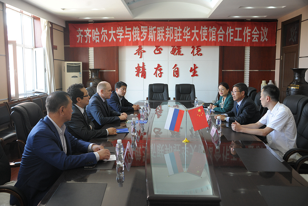 6月21日下午,俄罗斯联邦驻华大使馆一等秘书基先科先生和甘茹罗夫先生来访我校,副校长张树军在504会议室与来宾进行了友好交流。