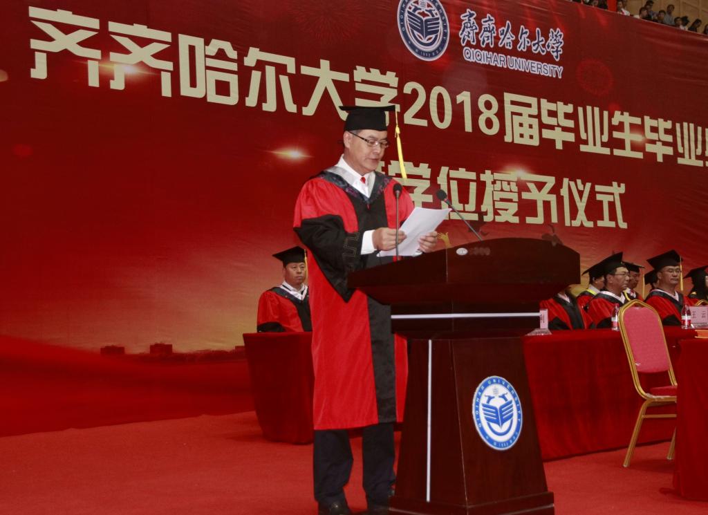 副校长李英杰宣读了齐齐哈尔大学《关于准予本科生、研究生、留学生毕业的决定》。