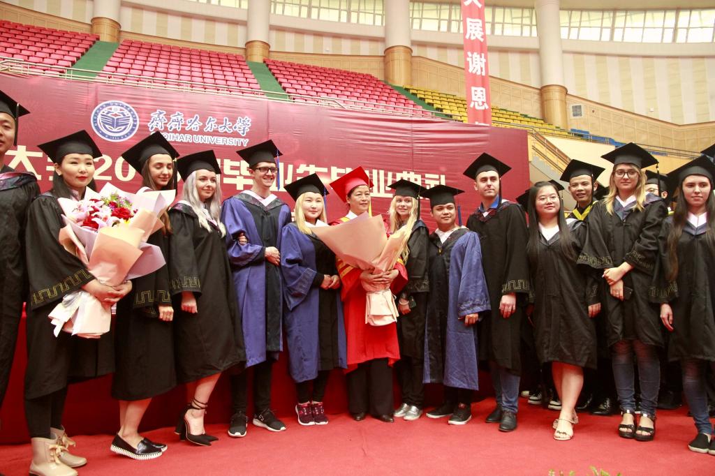 毕业留学生代表奥克萨娜、硕士毕业生代表韩毅初、本科毕业生代表郑祥鹏先后在典礼上发言,他们深情的表达了对母校的感恩和不舍,对老师、同学的感激和祝福,并表示作为齐大学子,一定会秉承“养正毓德 精存自生”的校训精神,积极进取、努力拼搏,用自己的所学所能回馈社会、回报母校。