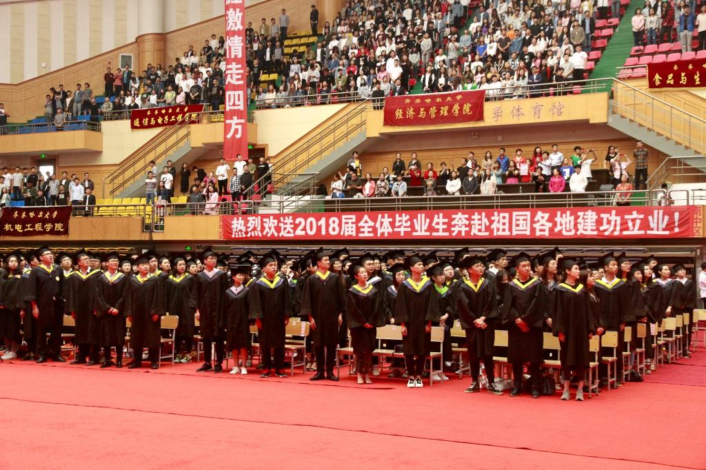 王刚在主持讲话中指出,2018届共有本科生6025人、研究生377人、留学生30人走出校门,他们中的绝大多数同学完成了人才培养方案规定的内容,达到毕业和学位授予要求,准予毕业并授予相应学位。让我们倍感欣慰的是你们当中一大批同学以自己优异的学习成绩、突出的思想品德、过硬的综合素质,将在祖国最需要你们的地方奉献火热的青春。学校为你们感动骄傲和自豪,并深深祝福你们!