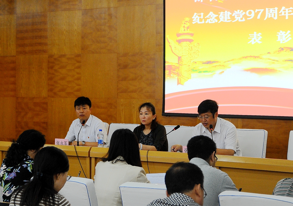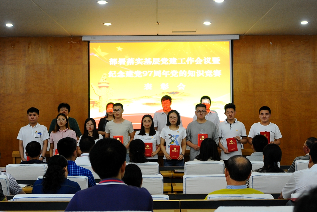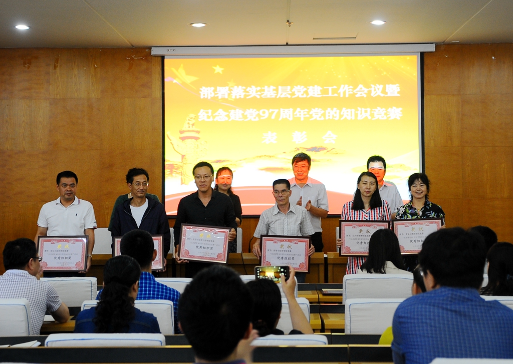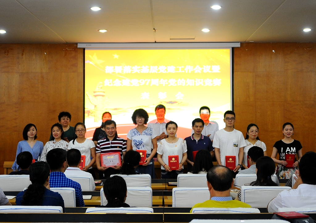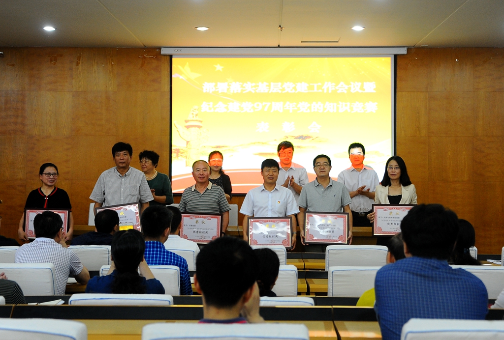 会上,学校党委对在庆祝建党97周年党的知识竞赛活动中取得佳绩的组织和个人进行了表彰,齐宏伟宣读了获得“优秀组织奖”的12个党委、直属党支部名单,张文治宣读了获奖的个人名单。