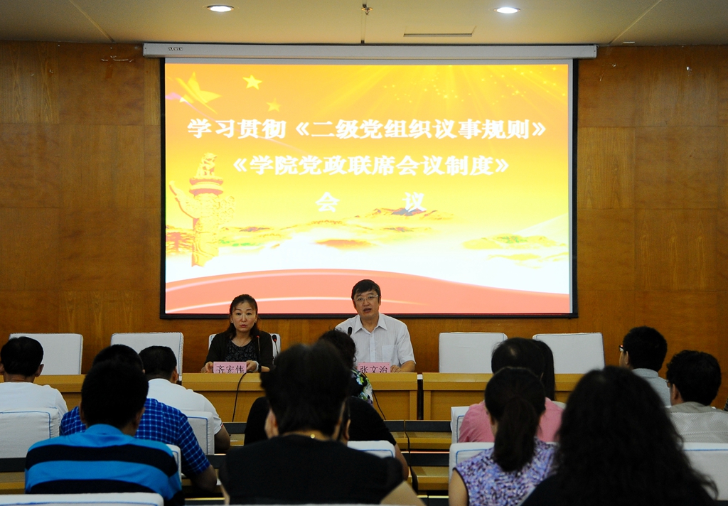 会前,张文治为各学院党政负责人,研究生部、离退休工作处、后勤管理处、图书馆、公共外语教研部、网络信息中心、资产运营管理中心党政负责人和机关党委书记解读了《中共齐齐哈尔大学委员会二级党组织议事规则(试行)》《齐齐哈尔大学学院党政联席会议制度(试行)》两个文件的精神和主要内容。
