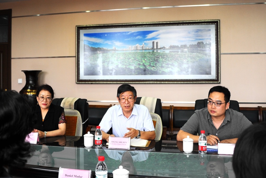 7月16日下午,美国驻沈阳总领事馆文化副领事梅孟达、文化领事助理于珕一行来到我校访问,副校长张树军在办公楼504会议室与来宾进行了友好交流。