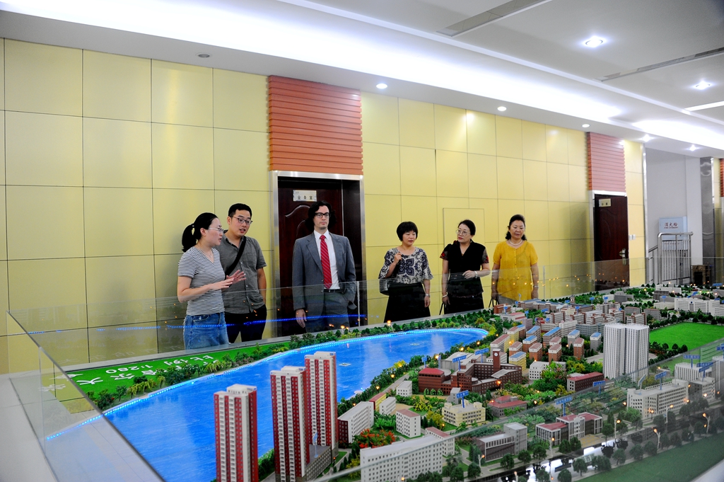 会谈后梅孟达一行在国际交流合作处(国际教育学院)处长(院长)张坤的陪同下参观了校史馆和校园。