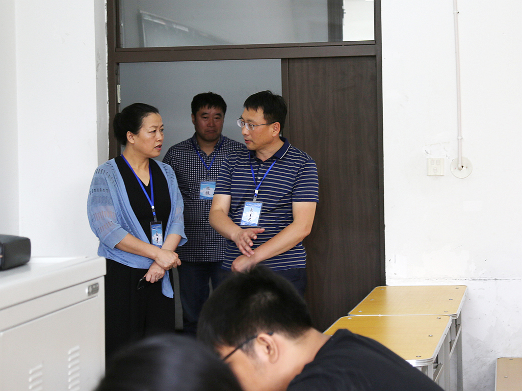 上午,在中区11号教学楼考场,陈桂芝仔细询问了本次考务工作整体情况,并通过查看试卷、考场名单、考场状态以及与监考老师面对面交流等方式,深入了解考试组织、考场秩序、考风考纪、学生答题情况以及监考教师履行职责情况。从巡视情况看,考试环境整洁,运行管理规范;监考教师按时到岗,认真履行监考职责;学生认真作答,考场秩序井然。