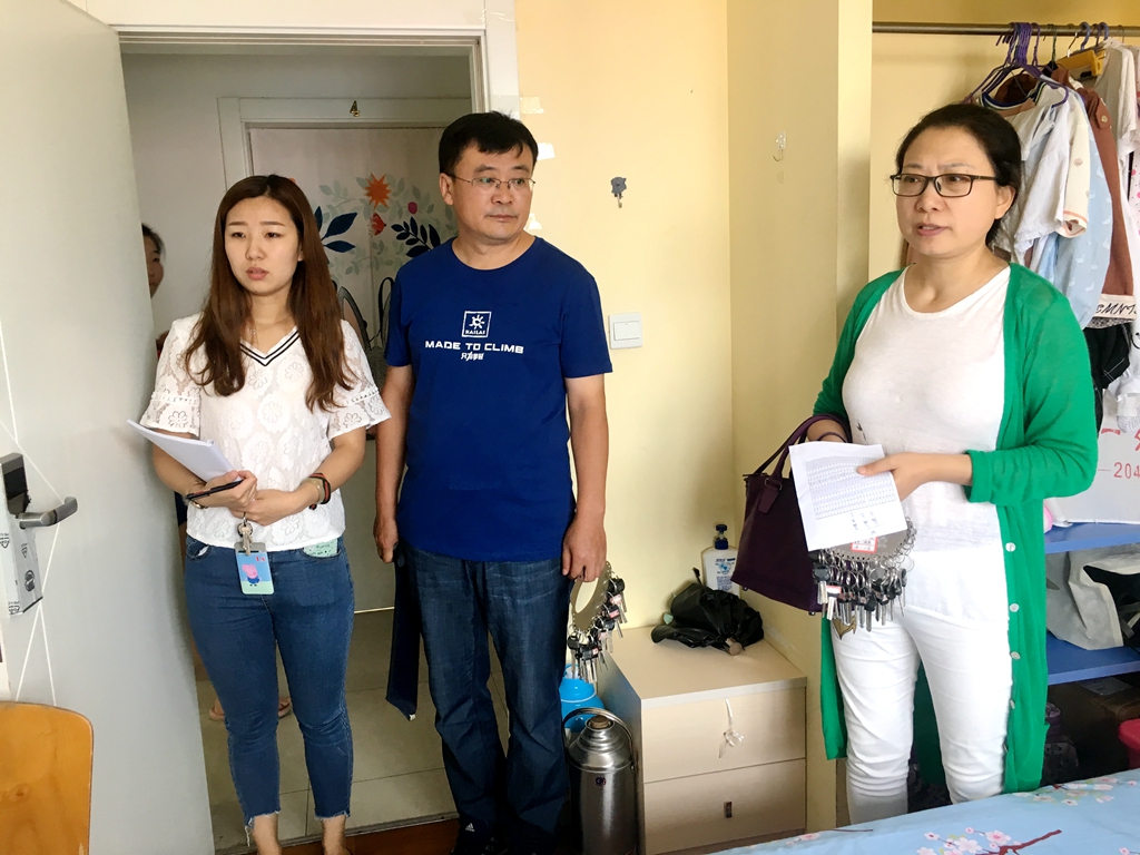 为进一步加强研究生宿舍管理,积极改善研究生住宿条件,构建安全文明的宿舍环境,8月27日下午,副校长张树军来到我校研究生宿舍进行走访检查,研究生部党委书记、主任王中双,研究生部副主任田丽军陪同走访。