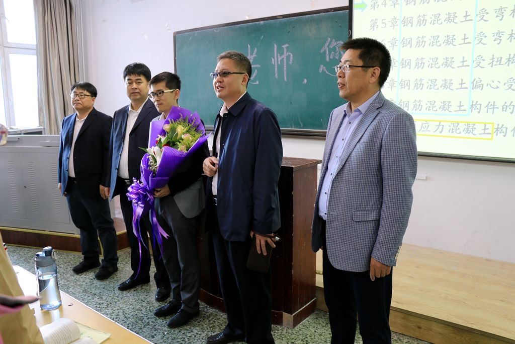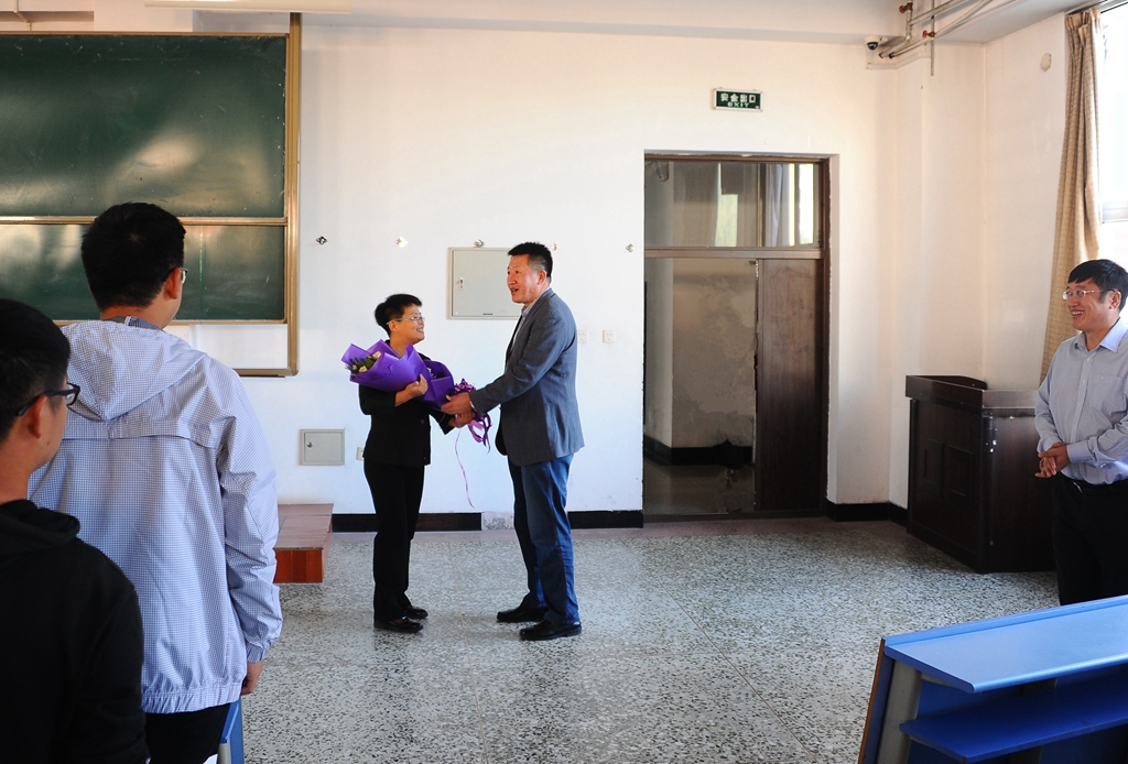 7:50分,校领导分别来到中区、东区和西区的教室,为正在准备上课的8位教师代表送上鲜花并祝他们节日快乐!校党委书记兰景力希望全校广大教师要深入贯彻习近平总书记5月2日在视察北京大学时发表的重要讲话精神,牢记总书记的嘱托和希望,要爱惜这份职业,严格要求自己,不断完善自己,执着于教书育人,把培养社会主义建设者和接班人作为根本任务;校长陈桂芝代表学校感谢全校教职员工为学生成才和学校发展做出的突出贡献,并号召大家要进一步认真学习新时代全国高等学校本科教育工作会议精神,坚持“以本为本”,回归常识、回归本分、回归初心、回归梦想,潜心教书育人,做党和人民满意的好老师。