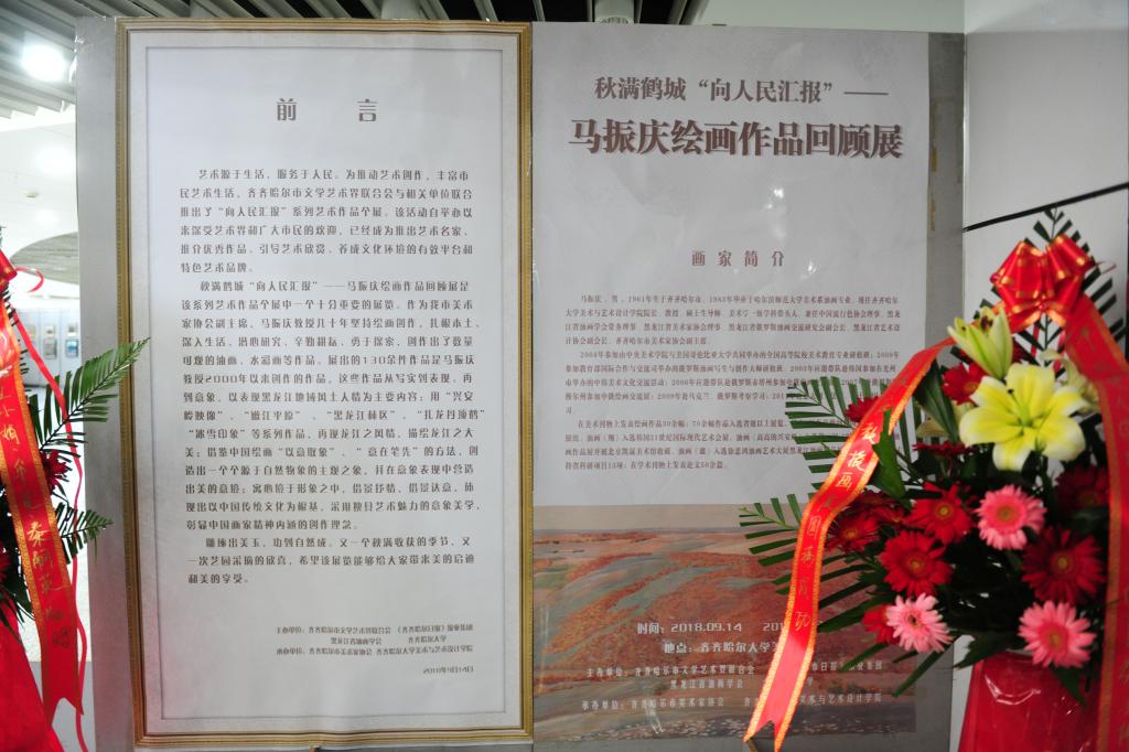 9月14日上午,由齐齐哈尔市文学艺术界联合会、《齐齐哈尔日报》报业集团、黑龙江省油画学会、齐齐哈尔大学共同主办,齐齐哈尔市美术家协会、齐齐哈尔大学美术与设计学院承办的秋满鹤城“向人民汇报” 马振庆绘画作品回顾展在齐齐哈尔大学美术馆开幕。