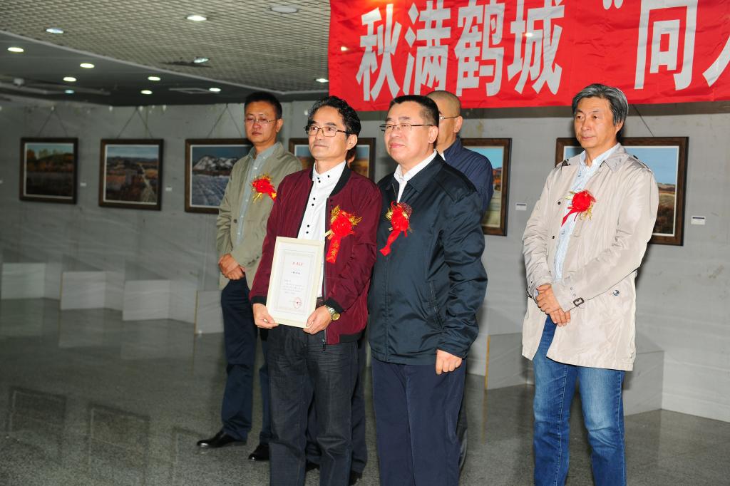 市委宣传部副部长毕肃升向马振庆颁发“向人民汇报”个展荣誉证书