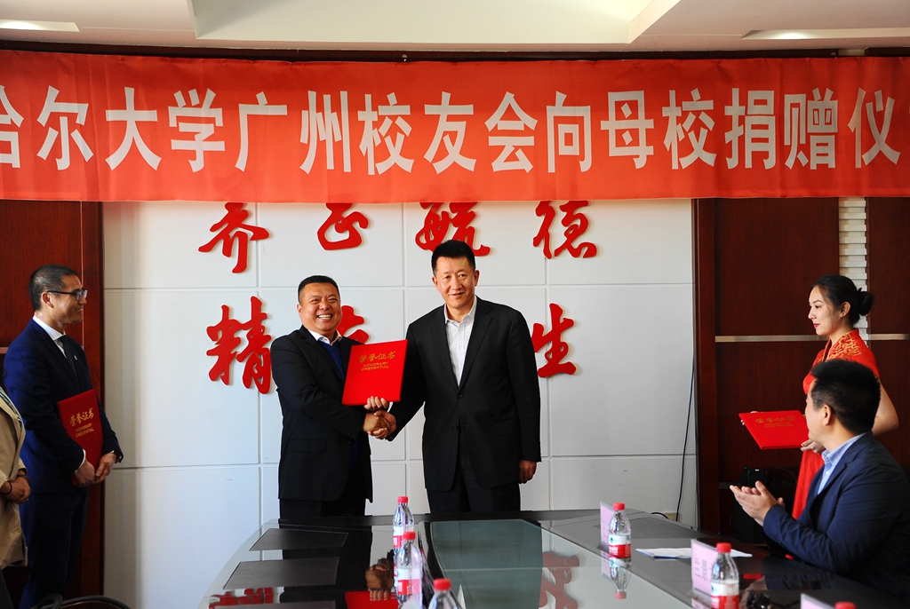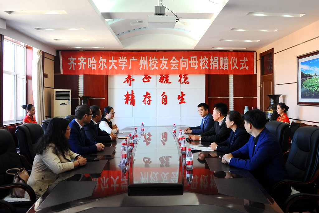 9月9日上午,广州校友会向母校捐赠仪式在学校办公楼504会议室举行。齐齐哈尔大学广州校友会创会会长李敬民、现任会长刘德权和秘书长曾晓萍,学校党委书记兰景力、校党委副书记齐宏伟出席仪式。学校办公室主任王玉国、副主任宋志章参加了仪式。