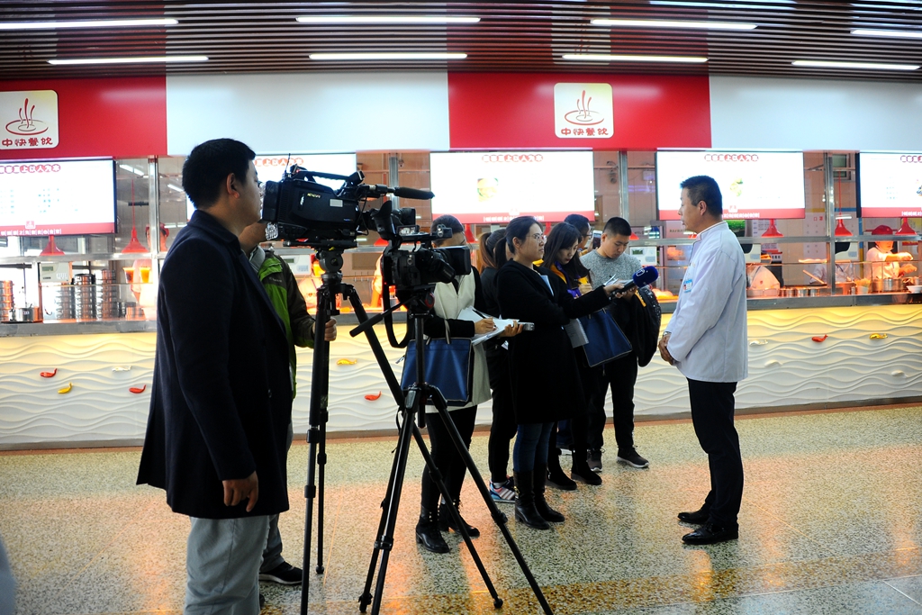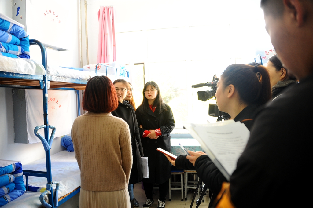 会后,媒体采访团一行先后来到我校中区图书馆、学生洗浴中心、第13号学生公寓,东区第8号学生公寓、东区学生洗浴中心施工现场、学生事务服务中心以及中区学生餐饮中心等场所。重点对宿舍环境改造、宿舍楼内水房、卫生间改建,洗浴中心条件改善,食堂菜品质量种类、食品卫生安全和宿舍楼门禁系统等整改项目进行了实地走访拍摄,并随机采访了校长陈桂芝及部分师生代表。