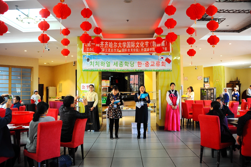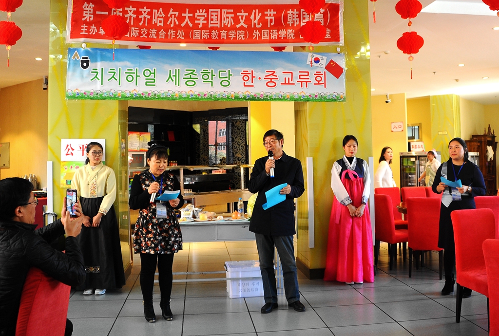 10月24日下午,齐齐哈尔大学中外学生文化艺术节(韩国篇)在德润大厦一楼留学生餐厅隆重举行,本次活动由国际交流合作处(国际教育学院)主办,外国语学院、世宗学堂协办。副校长张树军出席活动,国际交流合作处(国际教育学院)、外国语学院师生以及韩国留学生、外教等百余人参与了此次活动。