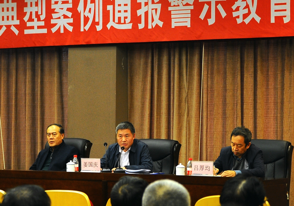 11月7日下午,学校在德润大厦四楼会议室召开“以案为鉴”典型案例通报警示教育大会,校领导陈桂芝、王刚、李英杰、姜国庆、张树军、吕厚均出席会议,校党委委员、纪委委员、全校副处级以上干部、校党风廉政建设监督员、二级党委(直属党支部)纪检委员参加了会议。会议由纪委书记姜国庆主持。