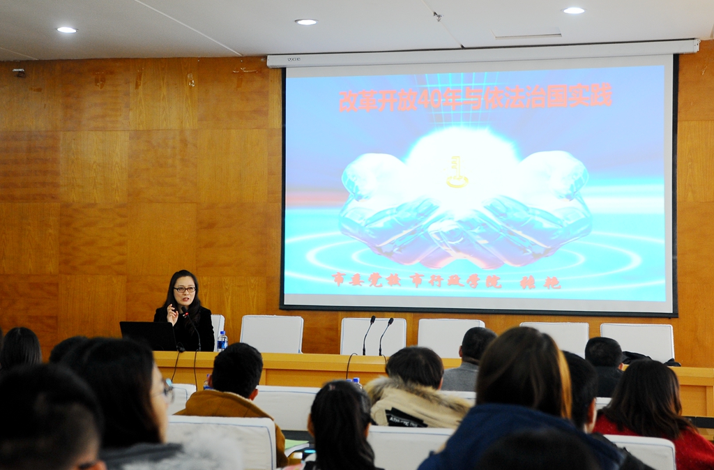齐齐哈尔市委党校教育长张艳教授在论坛上做了题为《改革开放40周年与依法治国实践》的专题学术报告,并与同学们进行了交流互动。