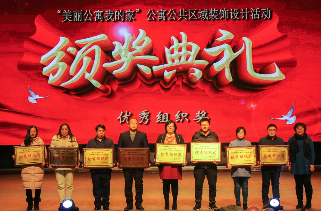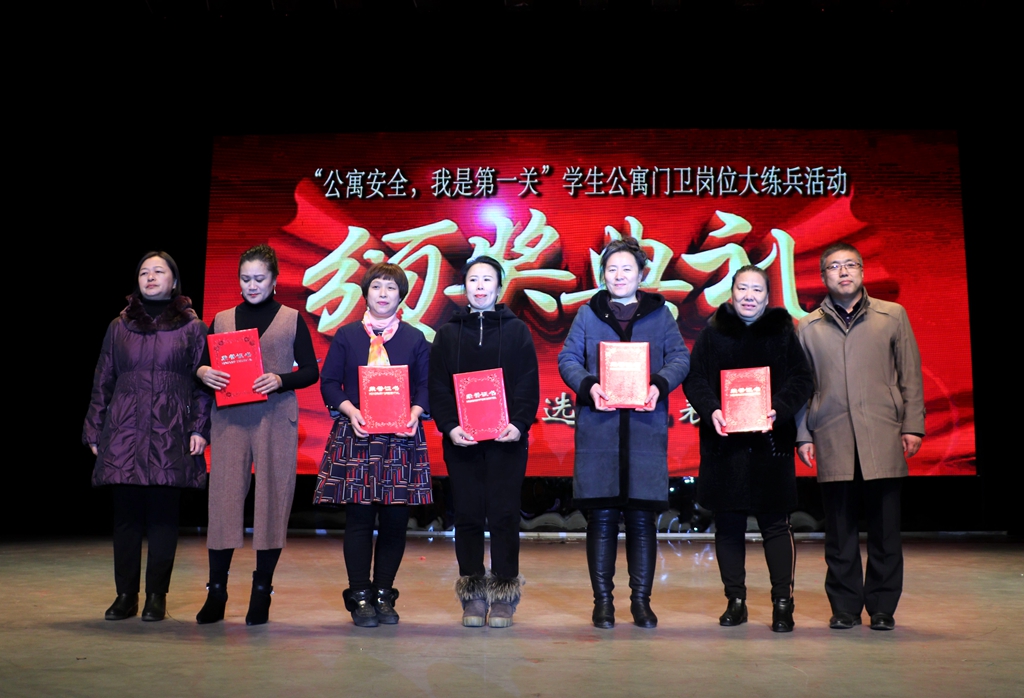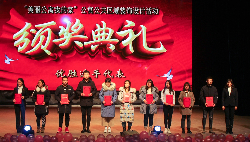 在晚会期间,同时举行了第五届“寝室文化节”系列活动颁奖仪式。以“公寓安全,我是第一关”为主题的门卫岗位大练兵活动优胜者、“我奉献,我快乐”为主题的“最美公寓人”获得者、“美丽公寓我的家”为主题的公寓公共区域装饰设计大赛获奖者及学院优秀组织奖代表、“争先进,促整改”寝室卫生大评比获得优秀奖的学院受到表彰,与会领导分别为各获奖代表颁发获奖证书或奖牌。