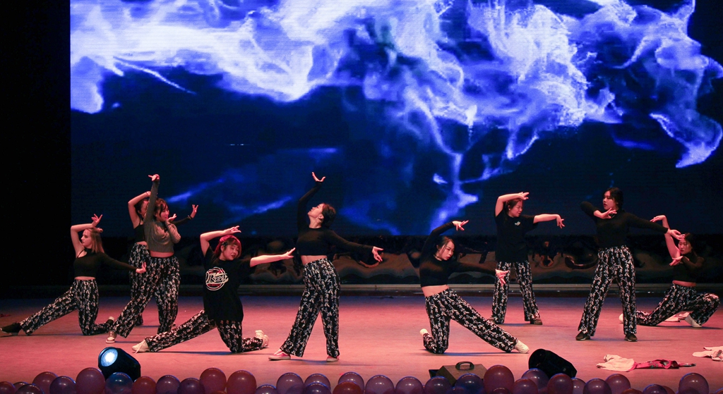 文艺汇演伊始,DBstreet舞团的演员们身着彩色条纹服带来动感开场舞《西游记》,用炫酷的舞蹈瞬间点燃现场气氛。