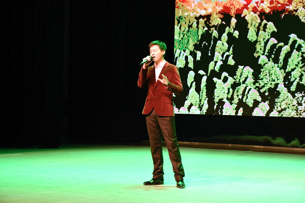 由音乐与舞蹈学院青年教师邓重博带来的歌曲《不忘初心》如大海滚滚的浪花,时而宛转悠扬、时而激情澎湃,提醒师生事业发展永无止境,共产党人的初心永远不能改变,时刻不忘初心,矢志永远奋斗。