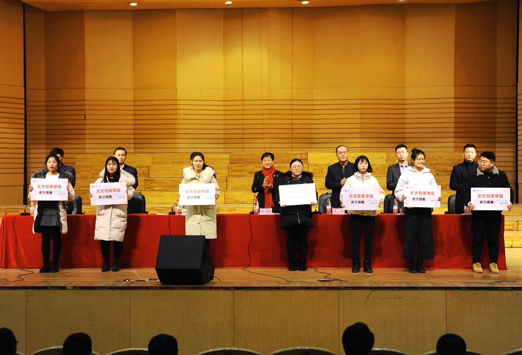 会上,王刚宣读了《关于命名表彰2017-2018学年度北大仓奖学金获得者的决定》(齐大发字[2018]76号)。