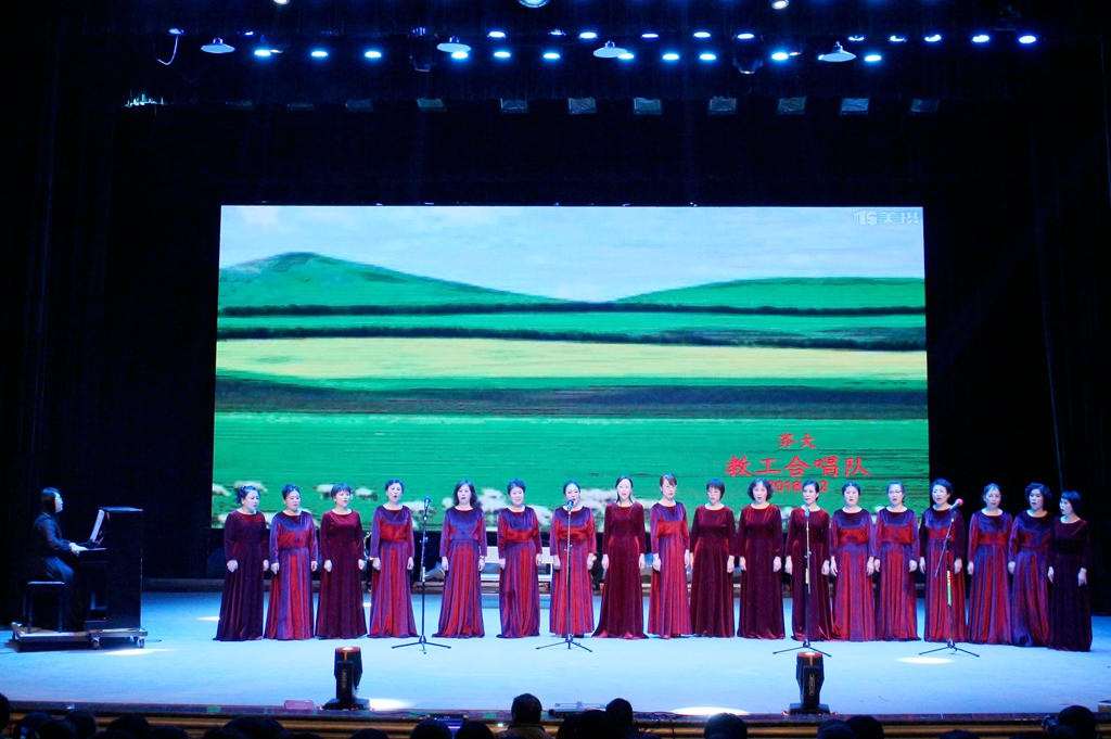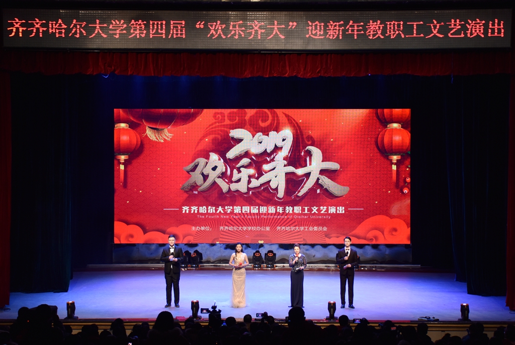 12月26日下午,学校在文化宫隆重举办第四届“欢乐齐大”迎新年教职工文艺演出,校领导陈桂芝、齐宏伟、王刚、李英杰、姜国庆、张树军、吕厚均和1300余名教师代表共同观看了演出。