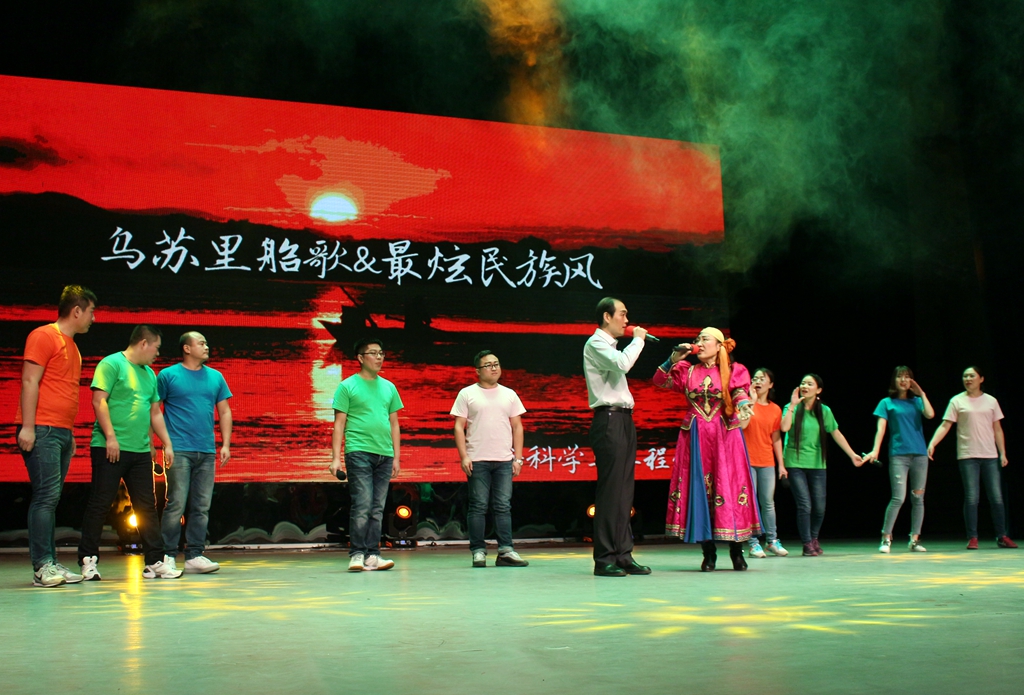 歌曲串烧最能引起观众与歌者的共鸣,材料科学与工程学院的老师们把《乌苏里船歌》和《最弦民族风》巧妙地结合在一起,完美的展现出帕米尔皑皑的雪岭、太平洋浩瀚的烟波、黑龙江荒寒的河岸和海南岛郁郁的椰林。