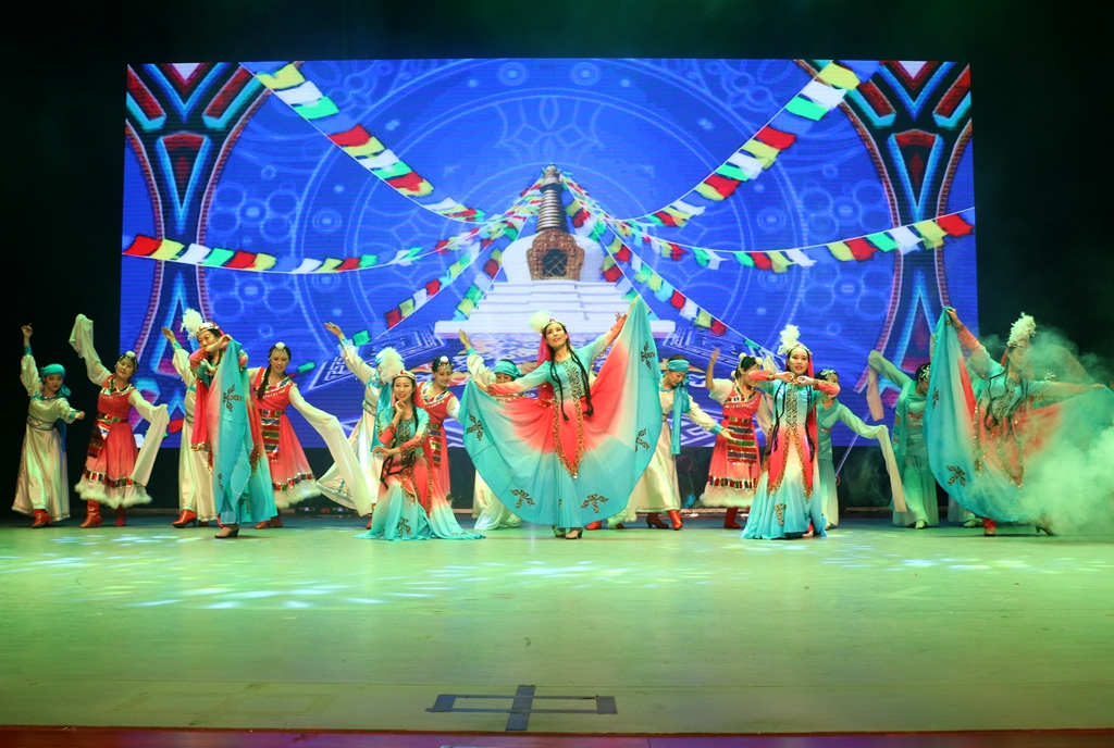 演出在观众的热烈掌声中拉开帷幕,教职工舞蹈队精心准备了充满民族特色的开场舞,将不同的民族元素巧妙地融合在一起,汉唐与维吾尔族的服饰相得益彰,蒙古族和藏族奔放的舞姿吸引着台下观众的眼球。