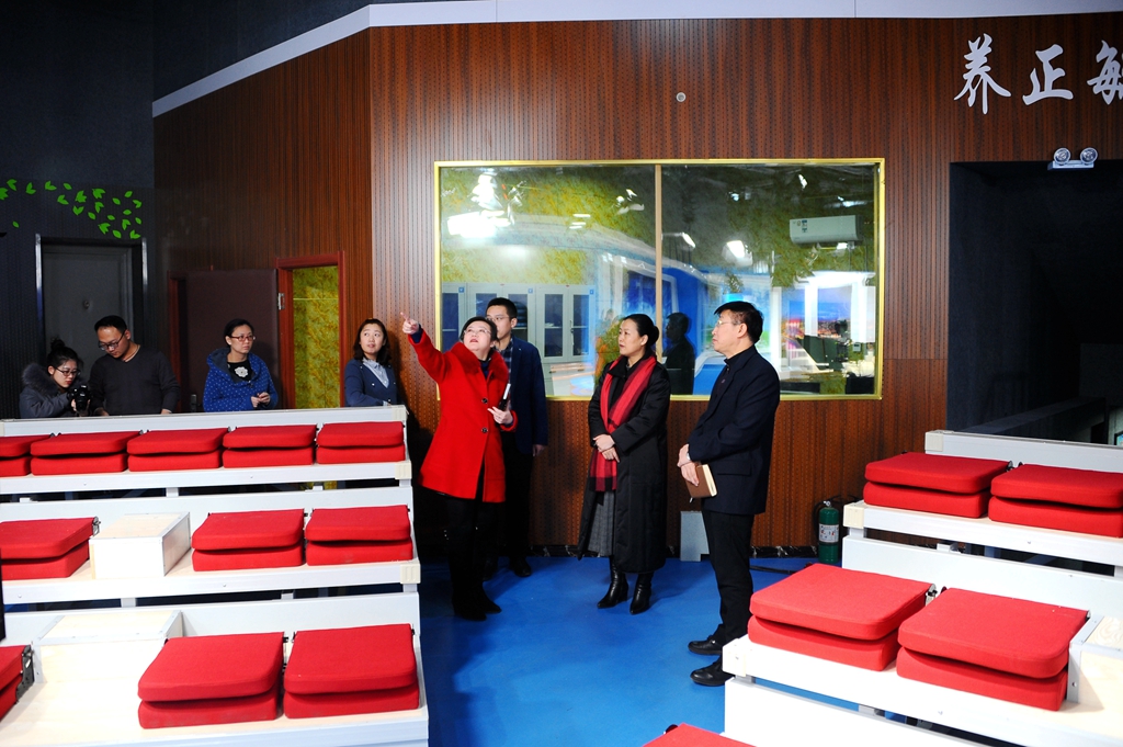 离开经济与管理学院后,陈桂芝来到教育与传媒学院,听取学院负责人关于2018年基层党建、审核评估整改、教学科研、人才培养和学生工作等情况的汇报,就学院发展建设的相关问题和教师代表们进行了沟通交流,并参观了教育与传媒学院多功能演播厅、数字影视编辑实验室、感觉统合训练室、基础心理学实验室、微格教学实验室。