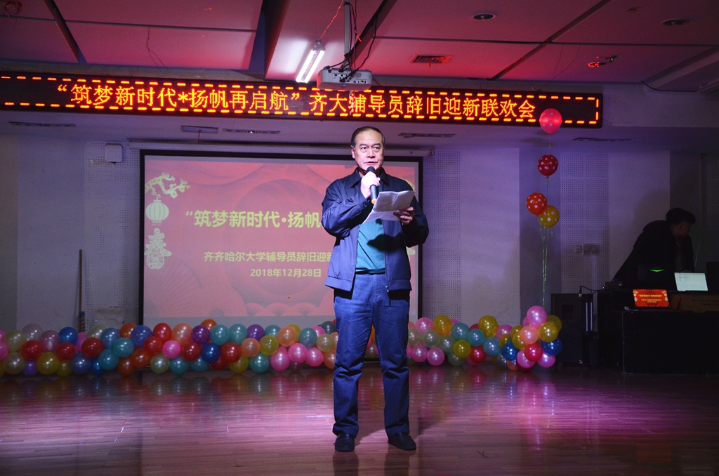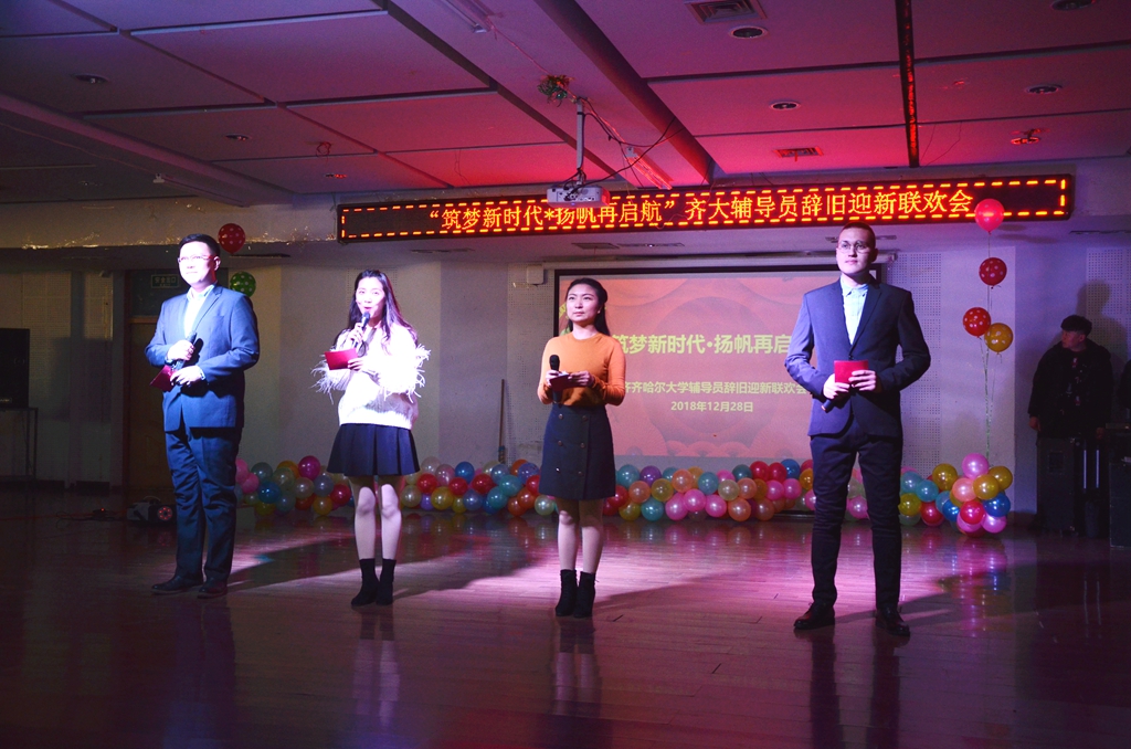 2018年12月28日下午,齐齐哈尔大学“筑梦新时代,扬帆再启航”辅导员辞旧迎新联欢会在东区音乐与舞蹈学院四楼排练厅举行。联欢会由学生工作部(学生处)主办,辅导员协会承办。副校长王刚出席联欢会,学生工作部(学生处)、校团委、招生就业处等职能部门工作人员,各学院主管学生工作领导以及全体辅导员参加了联欢会。联欢会由机电工程学院辅导员庞晓远、经济与管理学院辅导员王凤超、学生处少数民族学生专职辅导员哈尼巴提·恩提巴克、公寓辅导员安平主持。