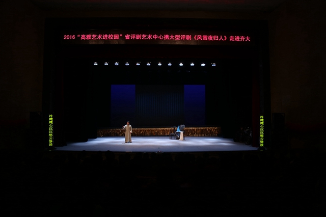 5月5日,2016“高雅艺术进校园”省评剧艺术中心携大型评剧《风雪夜归人》走进齐齐哈尔大学。我校党委书记李海红、党委宣传部副部长何强和1300余名师生共同欣赏了黑龙江省评剧艺术中心的艺术家们带来的大型评剧《风雪夜归人》。本次活动由我校党委宣传部、学生工作部(处)共同组织。