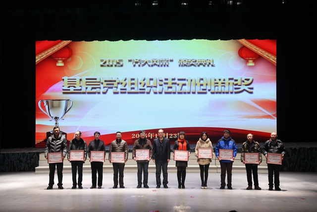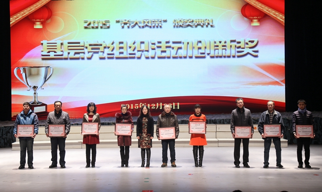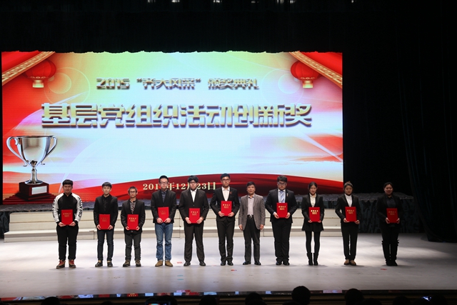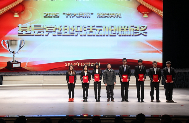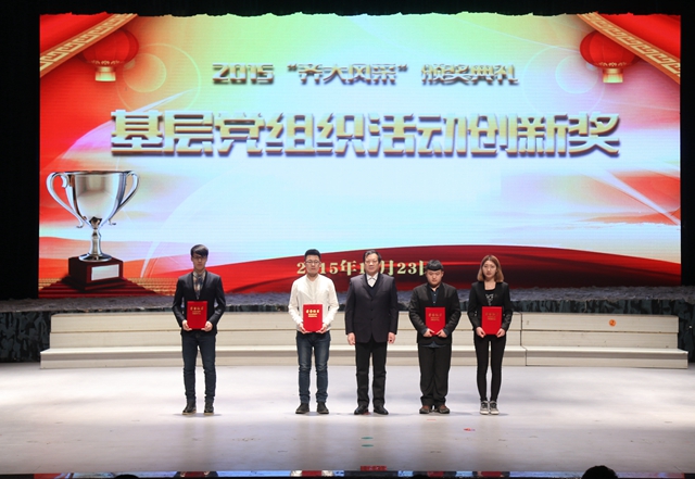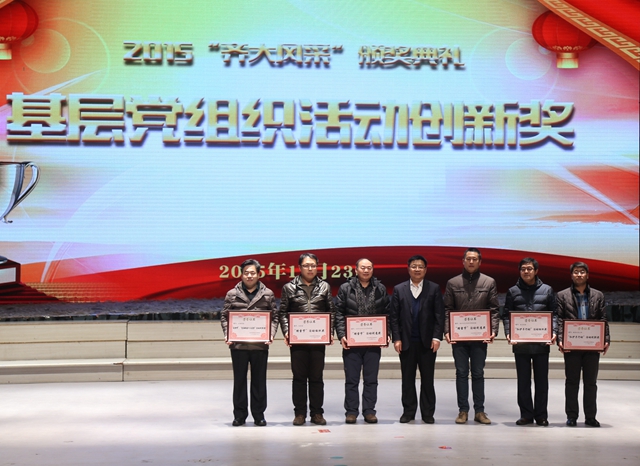 2015年12月23日下午,“齐齐哈尔大学2015‘齐大风采’颁奖典礼”上,学校党委对基层党组织活动创新进行了命名表彰,校党委书记李海红,校党委常委、副校长邓启刚、王刚、李英杰,校党委常委、工会主席李敏义,校党委常委、组织部部长齐宏伟为获奖基层党组织代表颁奖。