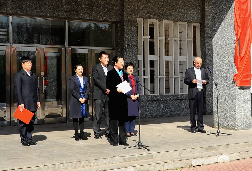 4月16日上午,齐齐哈尔大学附属中学暨齐齐哈尔大学教师教育实习实训基地举行揭牌仪式,齐齐哈尔市委常委、宣传部长何晶,副市长刘艳芳,市教育局长刘凤德,我校党委书记兰景力、校长陈桂芝、校党委副书记齐宏伟、副校长李英杰、工会主席陶佰睿出席仪式。