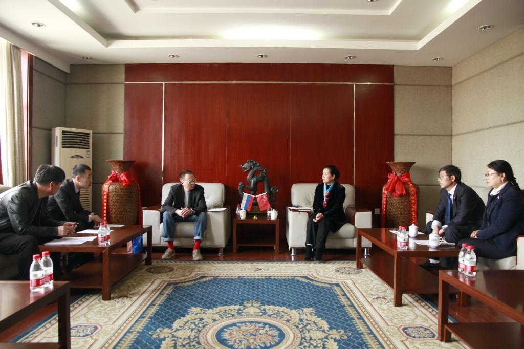 4月16日上午,俄罗斯后贝加尔国立大学副校长安得列·安那都里耶维齐·西马多夫先生来到我校洽谈校际合作事宜,校长陈桂芝在办公楼五楼接待室会见了安得列·安那都里耶维齐·西马多夫先生,并围绕我校与俄罗斯后贝加尔国立大学校际间的交流合作项目进行了深度交流。