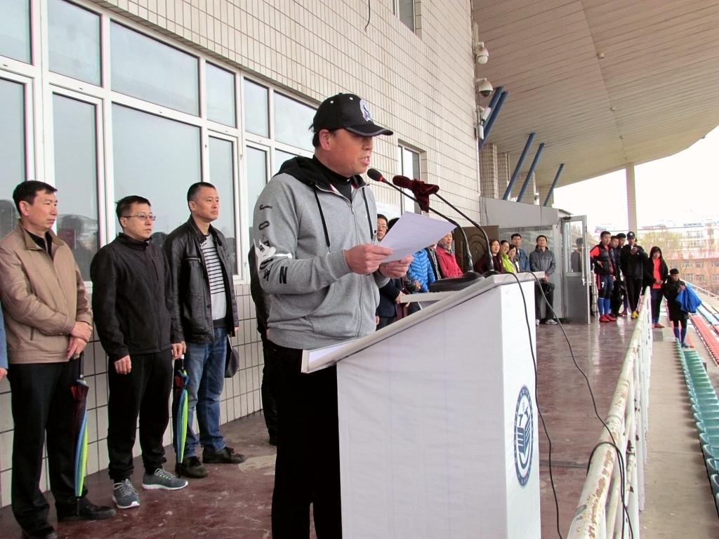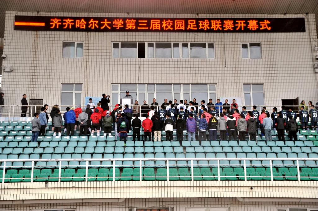 4月17日下午,齐齐哈尔大学第三届校园足球联赛在西区体育场开幕,副校长李英杰、校工会主席陶佰睿出席开幕式,本届足球联赛组委会成员、各学院团委书记、辅导员以及各学院代表队参加了开幕式。开幕式由体育学院院长张良祥主持。