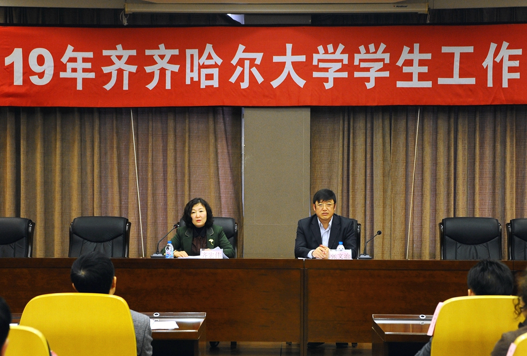 4月26日上午,齐齐哈尔大学2019年学生工作会议在德润大厦四楼会议室召开。校党委副书记齐宏伟、张文治出席会议,党委常委、宣传统战部长王晓梅,党委常委、组织部长马文辉,相关职能部门负责人、各学院党委书记、副书记副院长、全体辅导员、班主任代表以及学生工作部(学生处)、团委、招生就业处全体工作成员参加了会议。会议由齐宏伟主持。