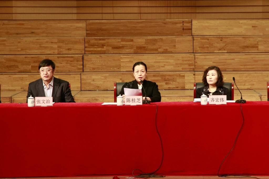 校领导陈桂芝、齐宏伟、张文治、王刚、李英杰、姜国庆、张树军、吕厚均、陶佰睿,党委常委、宣传统战部长王晓梅,党委常委、组织部长马文辉出席会议,会议由校长陈桂芝主持。