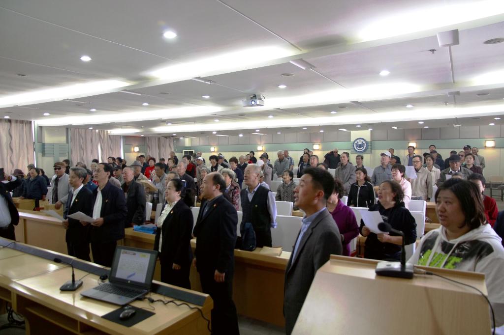 讲座结束后,与会人员共同合唱了经典歌曲《歌唱祖国》,嘹亮的歌声表达了我校离退休老同志们献礼祖国七十华诞的诚挚热情。