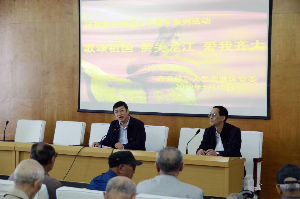 本次学习报告会拉开了离退休工作处“歌颂祖国、赞美龙江、爱我齐大”新中国成立七十周年系列庆祝活动的序幕,据悉,校离退休工作处还将开展书画作品展等活动,组织离退休老同志们为新中国成立七十周年献礼。