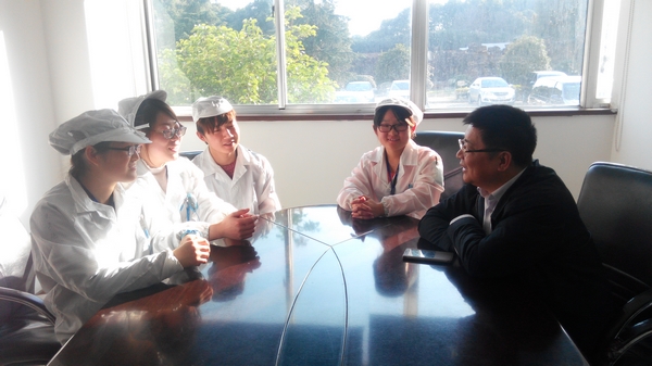 李海红一行还先后来到好孩子集团和金运新材料科技有限公司进行走访,这两家企业中也有我校的毕业生在工作。在好孩子集团,理学院2010届物理专业毕业生胡书圣听说母校老师来了,特意赶来和老师见面;2015年毕业的美术与设计学院毕业生潘永超则刚刚来到金运新材料科技有限公司工作不久,见到母校老师感到格外亲切。