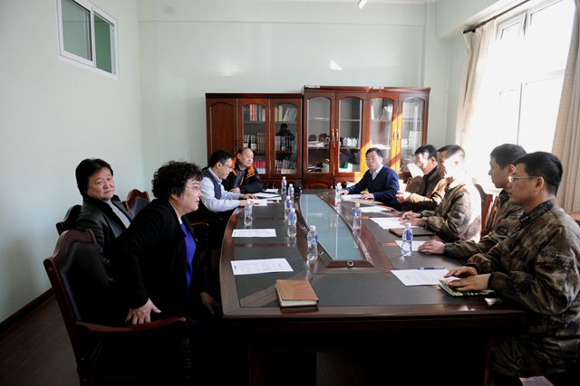 3月11日下午,我校在中区办公楼401会议室举行军校共建工作座谈会。校党委副书记盖元臣出席会议。中国人民解放军65448部队政治处主任姜殿舟一行与会。我校党委宣传统战部部长王晓梅,武装部部长吴刚,文学与历史文化学院党委书记张振民,音乐与舞蹈学院院长孙相根,校团委副书记迟生茂等参加了座谈。
