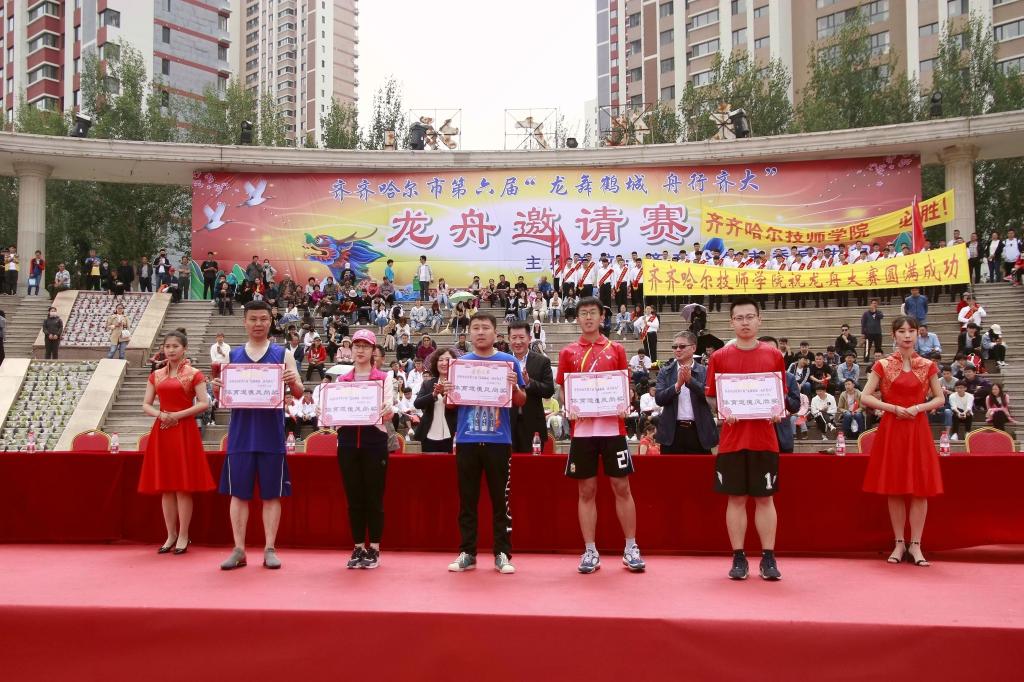 黑龙江北大仓集团有限责任公司代表队、齐齐哈尔医学院代表队、哈尔滨银行股份有限公司齐齐哈尔分行代表队、齐齐哈尔联通公司代表队、齐齐哈尔大学生命科学与农林学院代表队荣获本次龙舟邀请赛“体育道德风尚奖”。