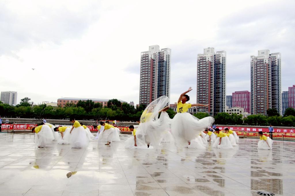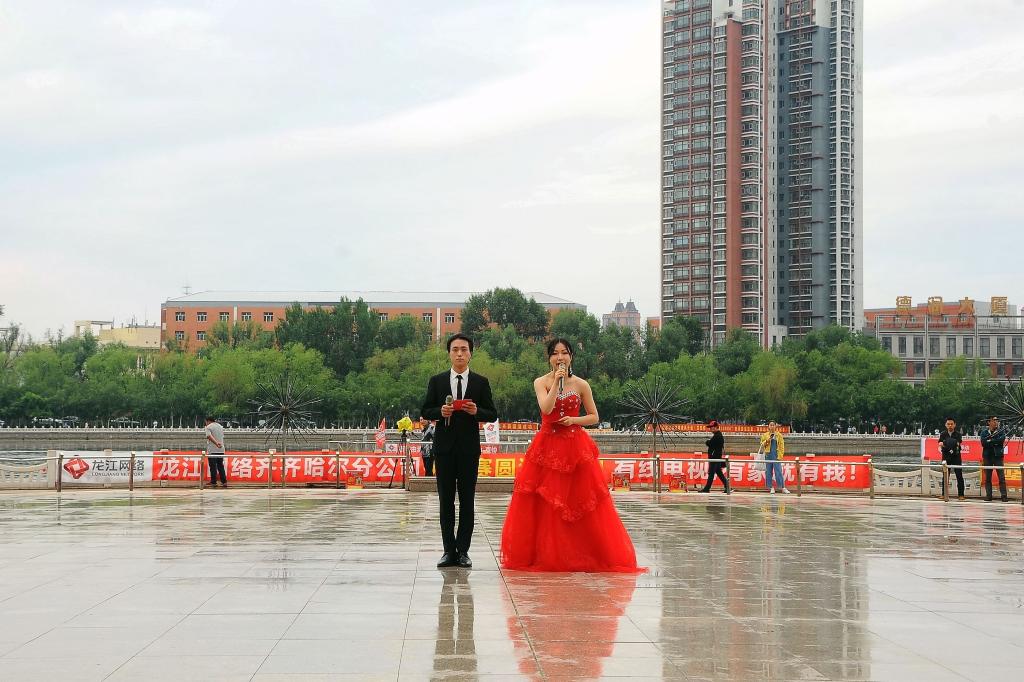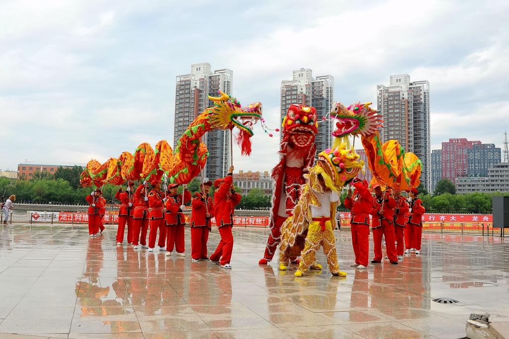 由齐齐哈尔市民带来的舞龙舞狮表演,慷慨激昂,粗犷豪放,展示了中华儿女在中国共产党领导下顶天立地、威武雄壮、不屈不挠、英勇顽强的民族性格,象征着风调雨顺国泰民安,中华民族的伟大复兴势不可挡,勇往直前。